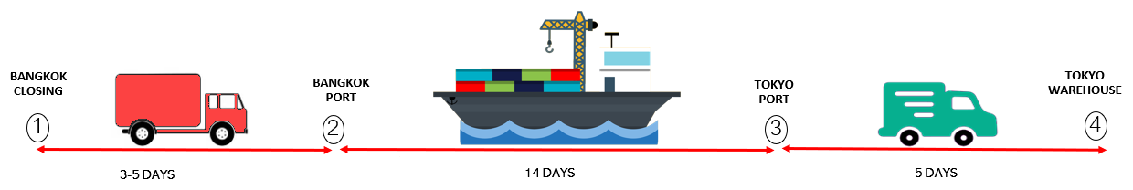 • ค่าบริการรวม ค่าขนส่งทางเรือจาก ท่าเรือกรุงเทพ จนถึง ท่าเรือปลายทาง (ท่าเรือโตเกียว)