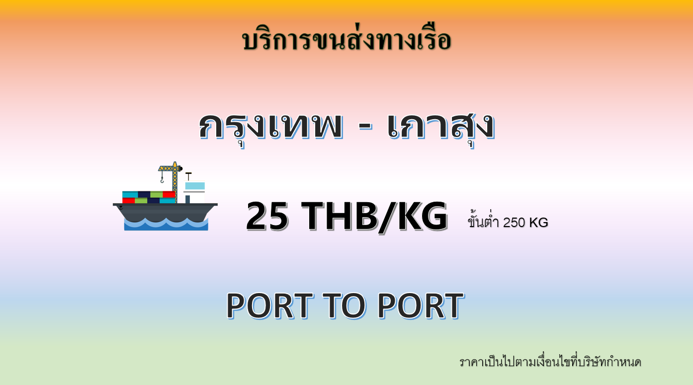 •ค่าบริการไม่รวม ค่ารถขนส่งสินค้า จากที่อยู่ผู้ส่งสินค้าจนถึงท่าเรือกรุงเทพ