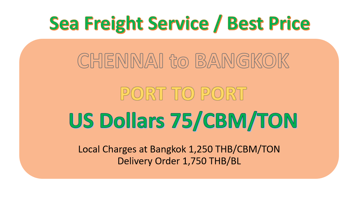 SEA FREIGHT SERVICE FROM CHENNAI, INDIA TO BANGKOK