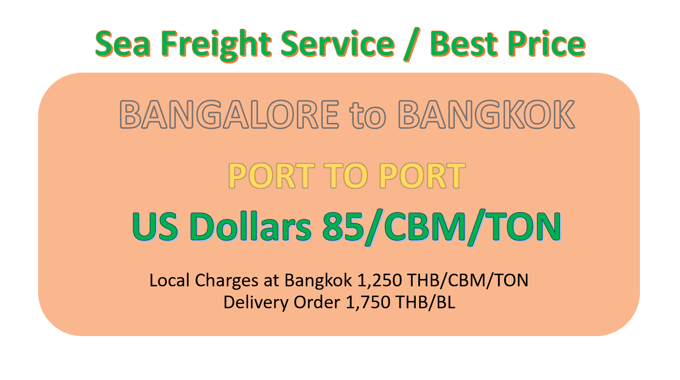 SEA FREIGHT SERVICE FROM BANGALORE, INDIA TO BANGKOK