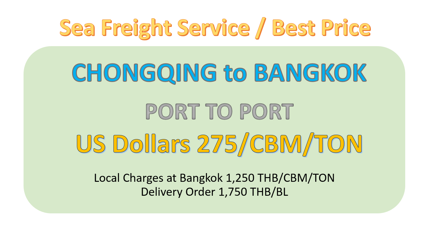 SEA FREIGHT SERVICE FROM CHONGQING, CHINA TO BANGKOK