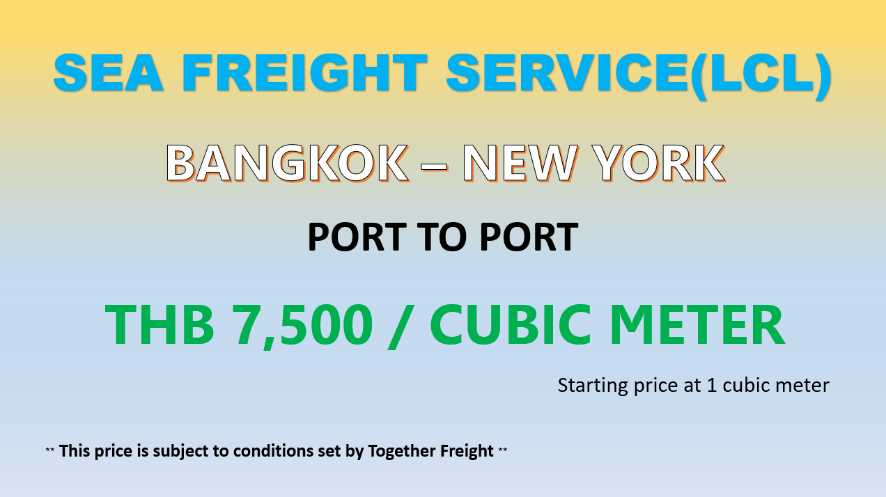 • ค่าบริการรวม ค่าขนส่งทางเรือจาก ลานบรรจุลาดกระบัง จนถึง ท่าเรือนิวยอร์ก