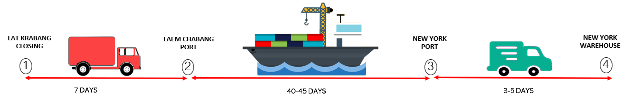 • เมื่อสินค้าถึงท่าเรือนิวยอร์ก ทางผู้รับสินค้าที่ปลายทางสามารถติดต่อขอรับสินค้าได้ที่คลังสินค้าที่นิวยอร์ก
