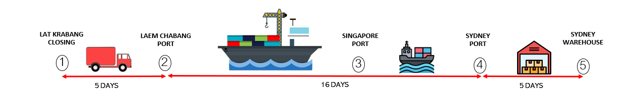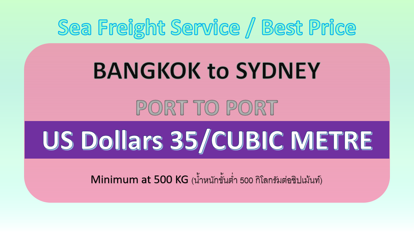 • ค่าบริการรวม ค่าขนส่งทางเรือจากกรุงเทพ (ลานบรรจุสินค้าลาดกระบัง) จนถึง ท่าเรือปลายทาง (ท่าเรือซิดนีย์)