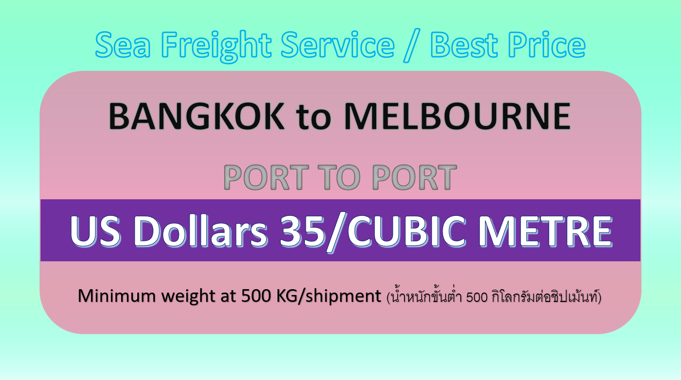 • ค่าบริการรวม ค่าขนส่งทางเรือจากกรุงเทพ (ลานบรรจุสินค้าลาดกระบัง) จนถึง ท่าเรือปลายทาง (ท่าเรือเมลเบิร์น)