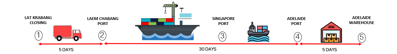 • ค่าบริการรวม ค่าขนส่งทางเรือจากกรุงเทพ (ลานบรรจุสินค้าลาดกระบัง) จนถึง ท่าเรือปลายทาง (ท่าเรือแอดิเลด)