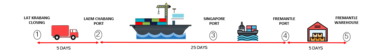 • ค่าบริการรวม ค่าขนส่งทางเรือจากกรุงเทพ (ลานบรรจุสินค้าลาดกระบัง) จนถึง ท่าเรือปลายทาง (ท่าเรือฟรีแมนเทิล)