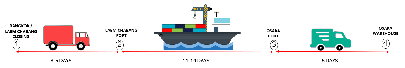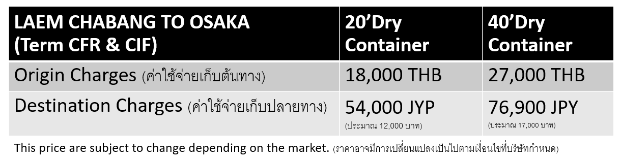 จากท่าเรือแหลมฉบัง (Laem Chabang Port) ถึงท่าเรือโอซาก้า (Osaka Port)