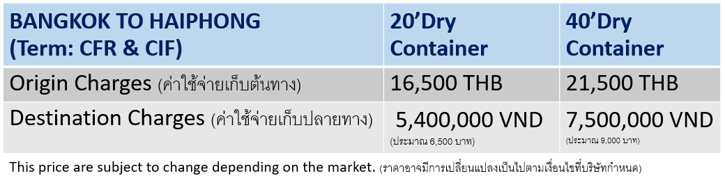 จากกรุงเทพ (CY-Bangkok) ถึงท่าเรือไฮฟง (CY-Haiphong Port)