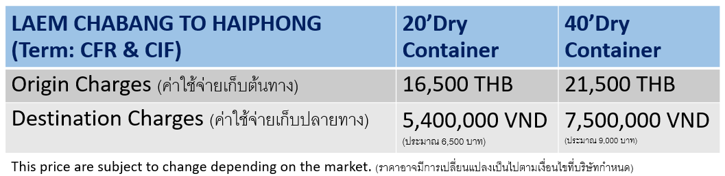 จากท่าเรือแหลมฉบัง (CY-Laem Chabang Port) ถึงท่าเรือไฮฟง (CY-Haiphong Port)