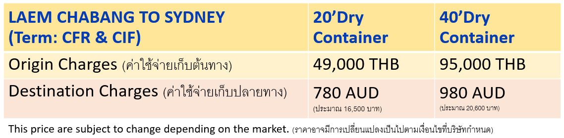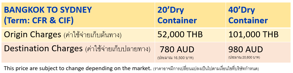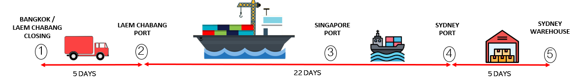 รายละเอียดการขนส่ง : มีเรือออกทุกสัปดาห์ ระยะเวลาในการขนส่งโดยรวมประมาณ 32 วัน