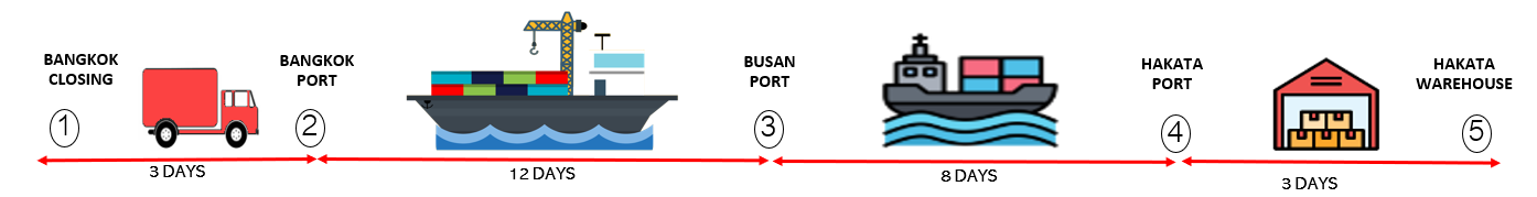 - The service charge includes vessel transport from Bangkok Port to Hakata Port.