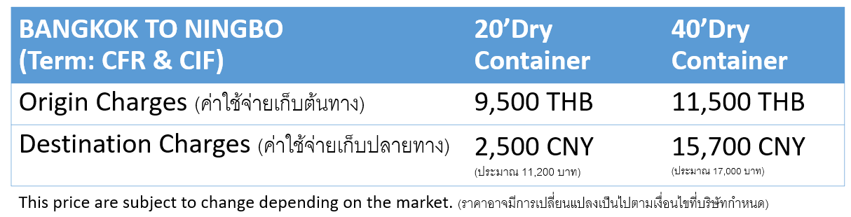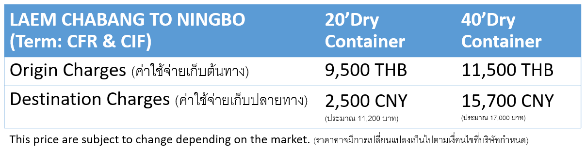 SEA FREIGHT SERVICE BANGKOK/LAEM CHABANG TO NINGBO (FCL)