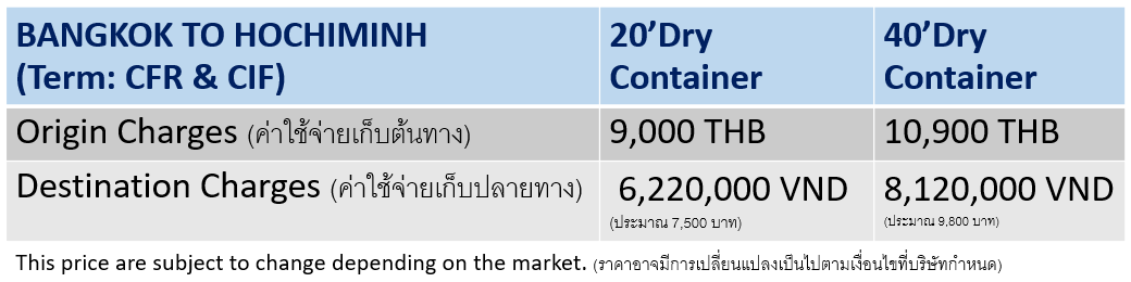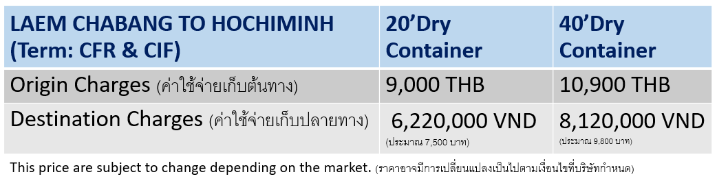 From CY-Laem Chabang Port to CY-Hochiminh Port