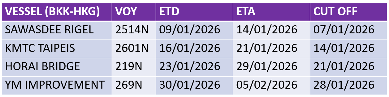 ETD = วันเรือออกจากท่าเรือกรุงเทพ ETD = วันเรือถึงท่าเรือฮ่องกง