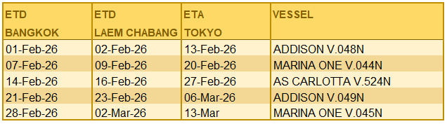 อัพเดทตารางเรือ กรุงเทพ & แหลมฉบัง - โตเกียว (FCL) FEB'2026 (1427 อ่าน)
